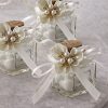 Badem Şekerli İnci Taşlı Kare Cam Şişe – Nikah, Nişan Hediyesi – 50ADET